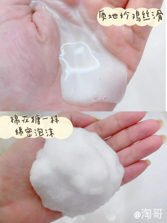 它的质地挤出来像绸缎一样丝滑,还很好起泡,稍微搓一搓就像棉花糖一样,丰富厚实的泡泡洗起来真的好满足!